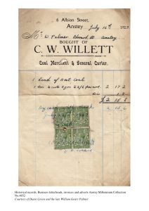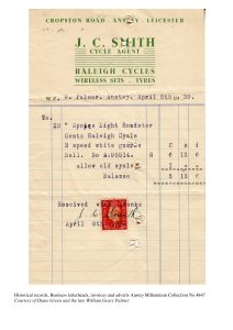 Our thanks go to Diane Green for loaning Anstey Archivist Brian Kibble this wonderful set of old receipts and invoices – which we have now been able to scan for both the archive and our online collection.